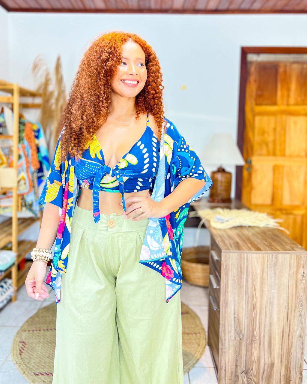 CONJUNTO NANDA - VERÃO - AZUL -VISCOSE PRÉ LAVADO ,GRAMADURA 140
